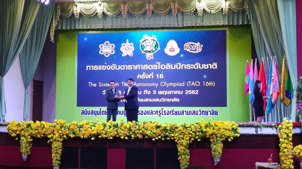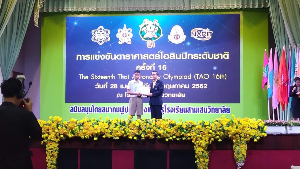 รศ.ดร.สรศักดิ์ ด่านวรพงศ์ และอาจารย์ ดร.ชัยโรจน์ ใหญ่ประเสริฐ อาจารย์ประจำสำนักวิชาวิทยาศาสตร์ มหาวิทยาลัยวลัยลักษณ์ นำนักเรียนตัวแทนจากศูนย์โอลิมปิกวิชาการ สอวน. มหาวิทยาลัยวลัยลักษณ์ไปแข่งขันดาราศาสตร์โอลิมปิกระดับชาติ ครั้งที่ 16 ณ หอประชุมอาคารอเนกประสงค์ โรงเรียนสามเสนวิทยาลัย กรุงเทพฯ ซึ่งในปีนี้โรงเรียนสามเสนวิทยาลัยเป็นเจ้าภาพจัดการแข่งขัน ระหว่างวันที่ 28 เมษายน – 3 พฤษภาคม 2562 โดยการแข่งขันครั้งนี้ นักเรียนจากศูนย์โอลิมปิกวิชาการ สอวน. มหาวิทยาลัยวลัยลักษณ์ ได้รับเกียรติคุณประกาศ 2 รางวัล ได้แก่ เด็กชายชนะภัย พรมนิยม โรงเรียนภูเก็ตวิทยาลัย นักเรียนระดับชั้นมัธยมศึกษาตอนต้น และนายอนัส ยะมะแล โรงเรียน มอ.วิทยานุสรณ์ นักเรียนระดับชั้นมัธยมศึกษาตอนปลาย