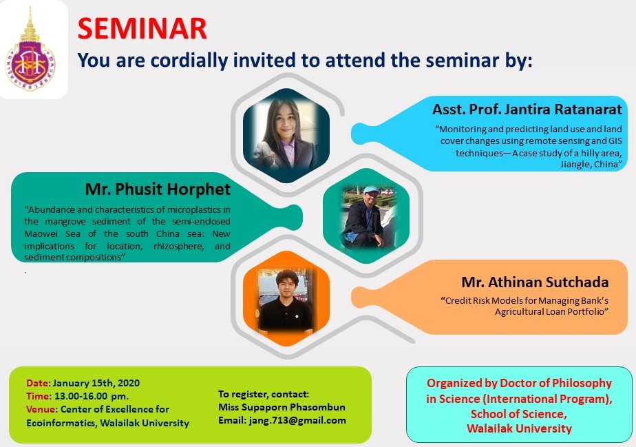 ขอเชิญเข้าร่วมฟังสัมมนาของนักศึกษาปริญญาเอก หลักสูตรปรัชญาดุษฎีบัณฑิต วิทยาศาสตร์ (หลักสูตรนานาชาติ)