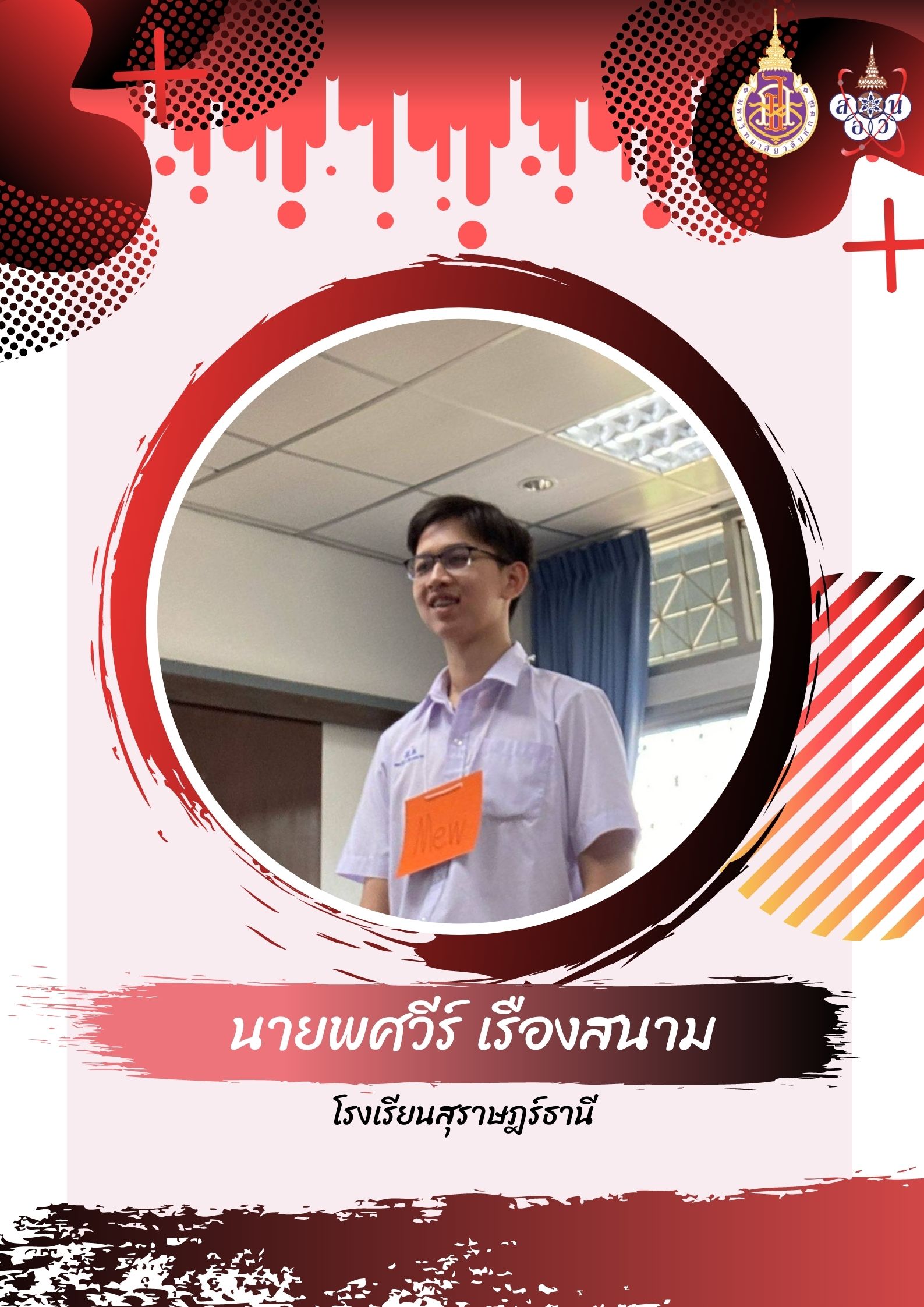 2. รางวัลเหรียญทอง ได้แก่ นายพศวีร์ เรืองสนาม นักเรียนโรงเรียนสุราษฎร์ธานี