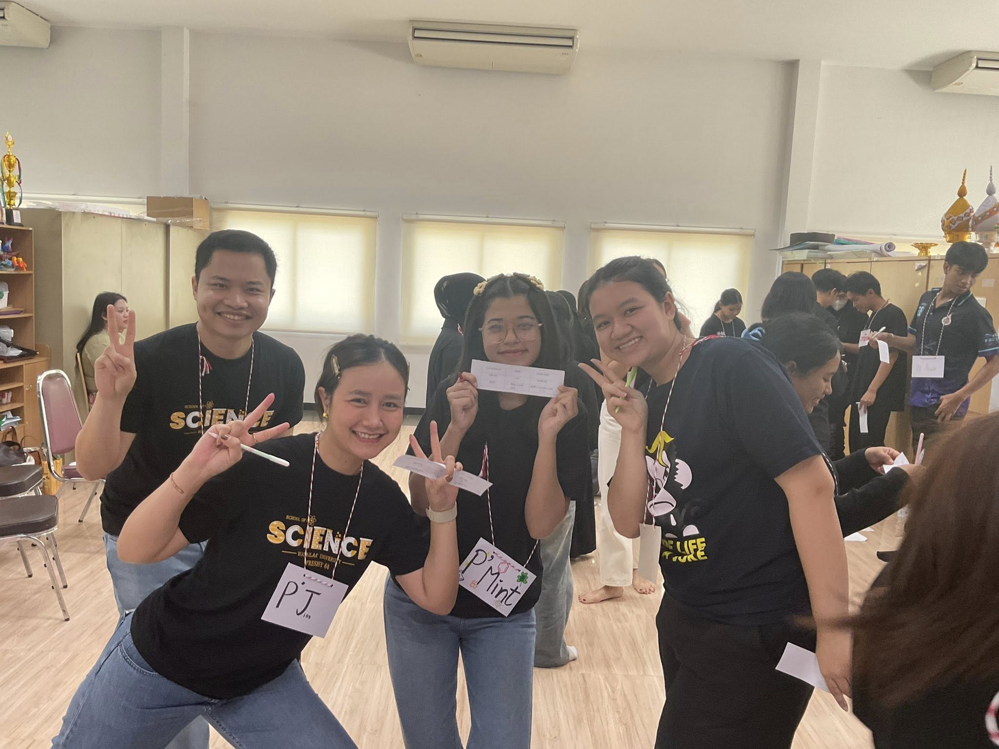 ต่อด้วย เกมเคมีบิงโก ที่เปิดโอกาสให้น้อง ๆ ได้ทำความรู้จักรุ่นพี่ เพื่อนใหม่ และอาจารย์อย่างใกล้ชิด เสริมสร้างบรรยากาศการเรียนรู้แบบไม่เครียด และกระชับความสัมพันธ์ระหว่างนักศึกษาแต่ละชั้นปี ไม่เพียงแต่เกมสนุก ๆ เท่านั้น กิจกรรมครั้งนี้ยังมี ฐานกิจกรรมเสริมพลัง ที่รุ่นพี่เคมีตั้งใจจัดเต็มทั้งความรู้และความฮา เพื่อให้น้อง ๆ ได้เรียนรู้เชิงปฏิบัติ สนุกสนาน และเข้าใจวัฒนธรรมของสาขาเคมีได้อย่างแท้จริง ปิดท้ายด้วย มื้ออาหารอบอุ่น ที่รุ่นพี่จัดเตรียมด้วยความตั้งใจและความรัก เพื่อให้ทุกคนได้ร่วมรับประทานร่วมกันในบรรยากาศครอบครัวชาวเคมี ความอบอุ่นของมื้ออาหารยังช่วยสร้างความรู้สึกผูกพันและความเป็นชุมชน ทำให้น้อง ๆ รู้สึกต้อนรับและพร้อมเริ่มต้นชีวิตการเรียนอย่างมั่นใจ
