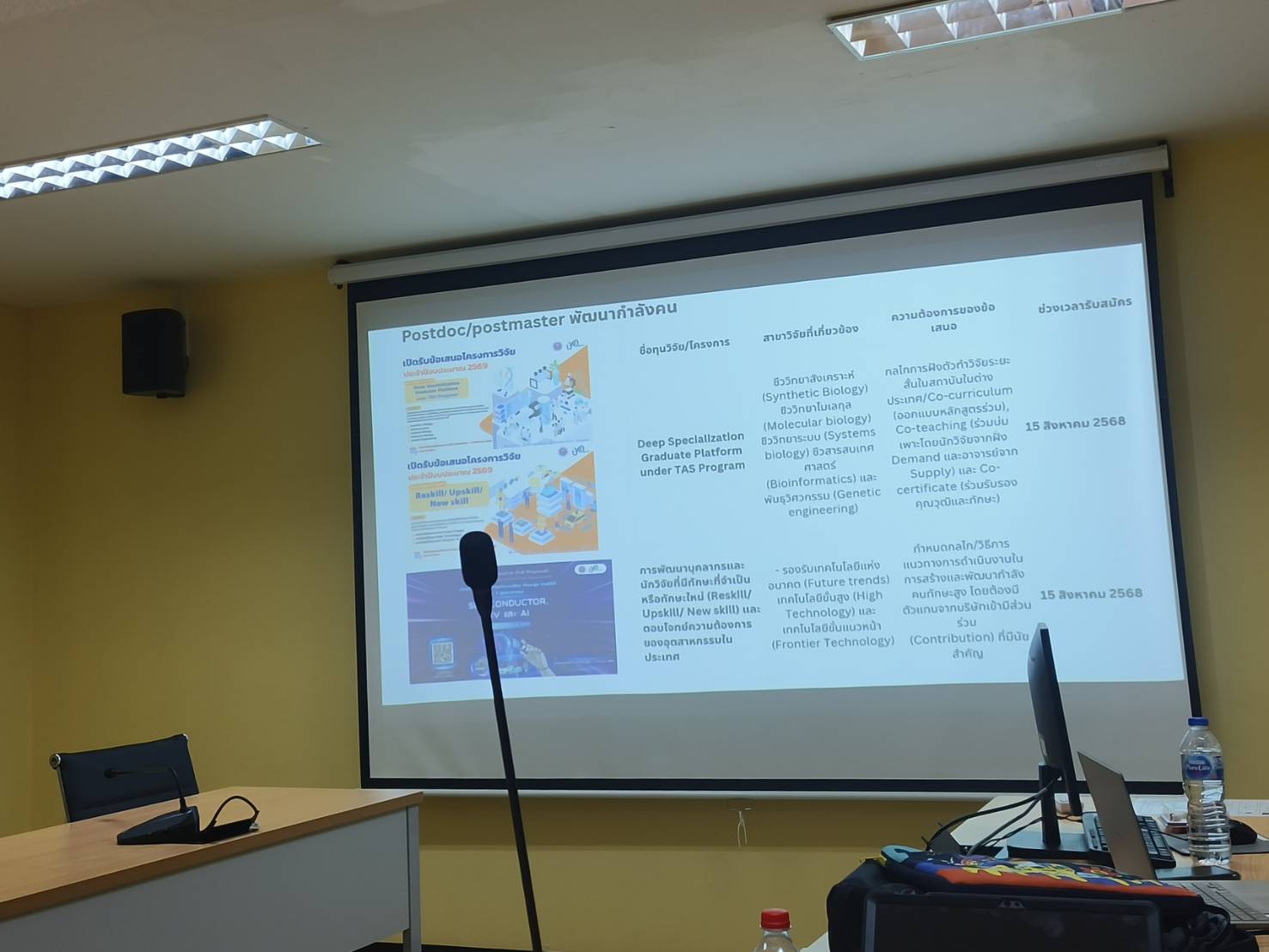 เมื่อวันที่ 8 ธันวาคม 2568 สำนักวิชาวิทยาศาสตร์ จัดกิจกรรมแนะนำทุนวิจัย บพค. (หน่วยบริหารและจัดการทุนด้านการพัฒนากำลังคนและทุนด้านการพัฒนาสถาบันอุดมศึกษาการวิจัยและการสร้างนวัตกรรม (บพค.) : Program Management Unit for Human Resources & Institutional